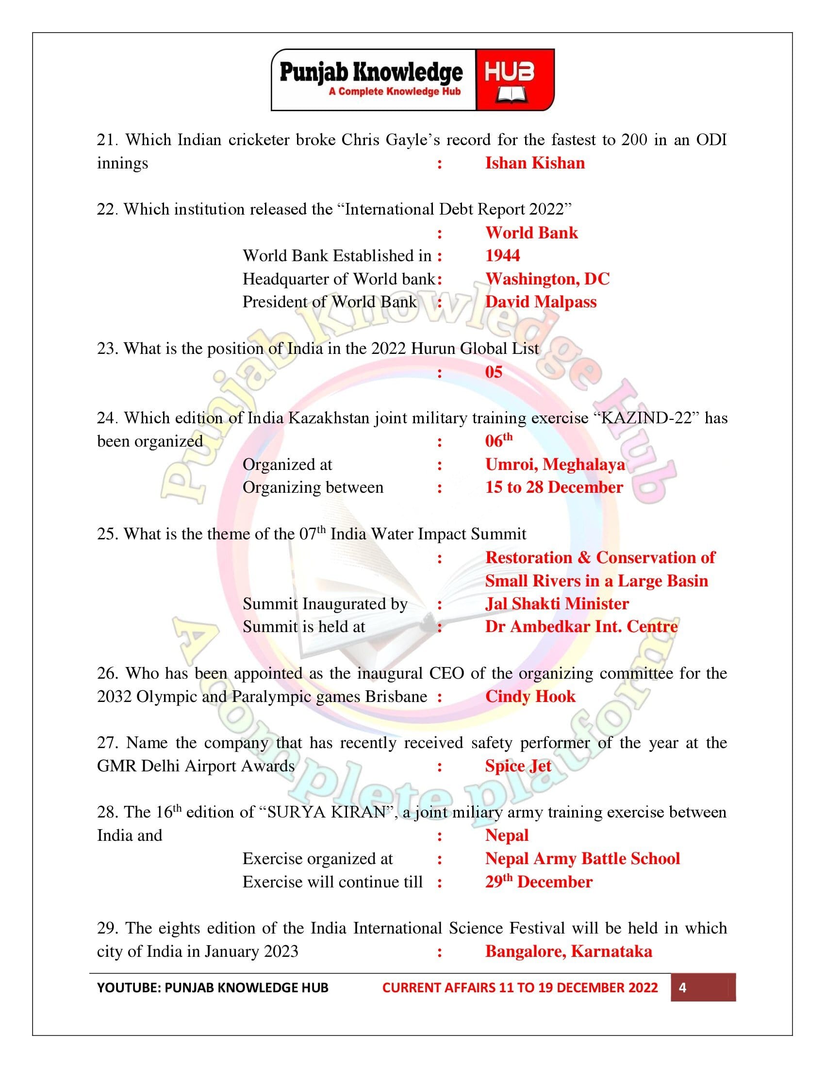 Current Affairs 11 to 19 December 2022 Get link Facebook X Pinterest Email Other Apps - December 19, 2022 Get link Facebook X Pinterest Email Other Apps Comments